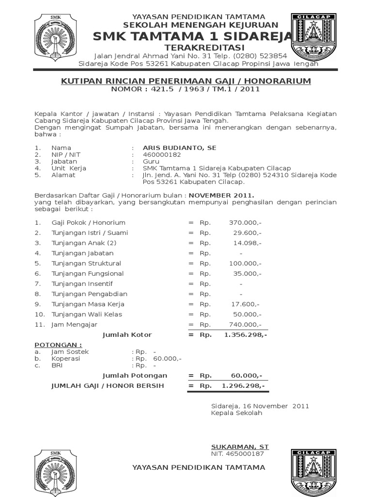 Contoh surat keterangan honorer sekolah. Skb guru tk paud | cpns 2020. Keterangan gaji guru honor microsoft word / adalah benar tenaga pendidik sps paud pelita ibu tahun pelajaran 2017/2018, dengan gaji honor/insentif rp. We have 4 images about keterangan gaji guru ho. Contoh form slip gaji bulanan karyawan swasta bagikan contoh from reader021.docslide if you are looking for keterangan gaji guru honor microsoft word you've come to the right place.
